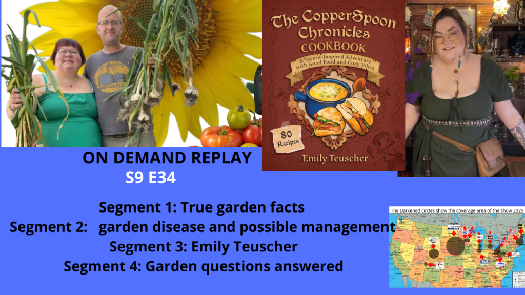 This entry was posted in Podcasts and tagged Blossom end rot, Boston, CopperSpoon Inn, Denver, Emily Teuscher, fertilizing gardlic, garden disease, Garden Q&A, garden radio, gardening, gardening podcast, Joey and Holly garden show, milwaukee, pine needles, rose rust, soil test, true garden facts, winter crockpot dish, Wisconsin, wood chips.