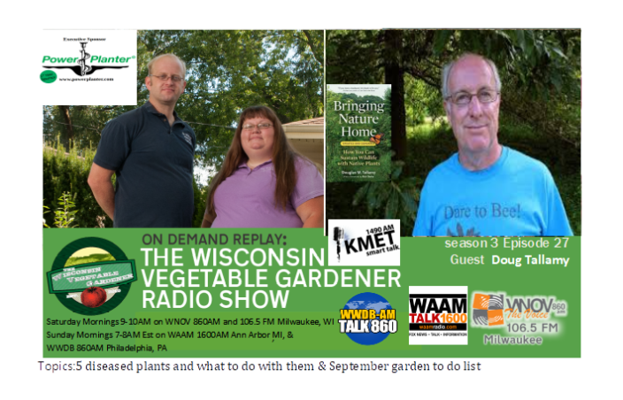 S3E27 Common plant diseases – identify and solve, Sept Garden To Do List, Guest Doug Tallamy – The Wisconsin Vegetable gardener radio show