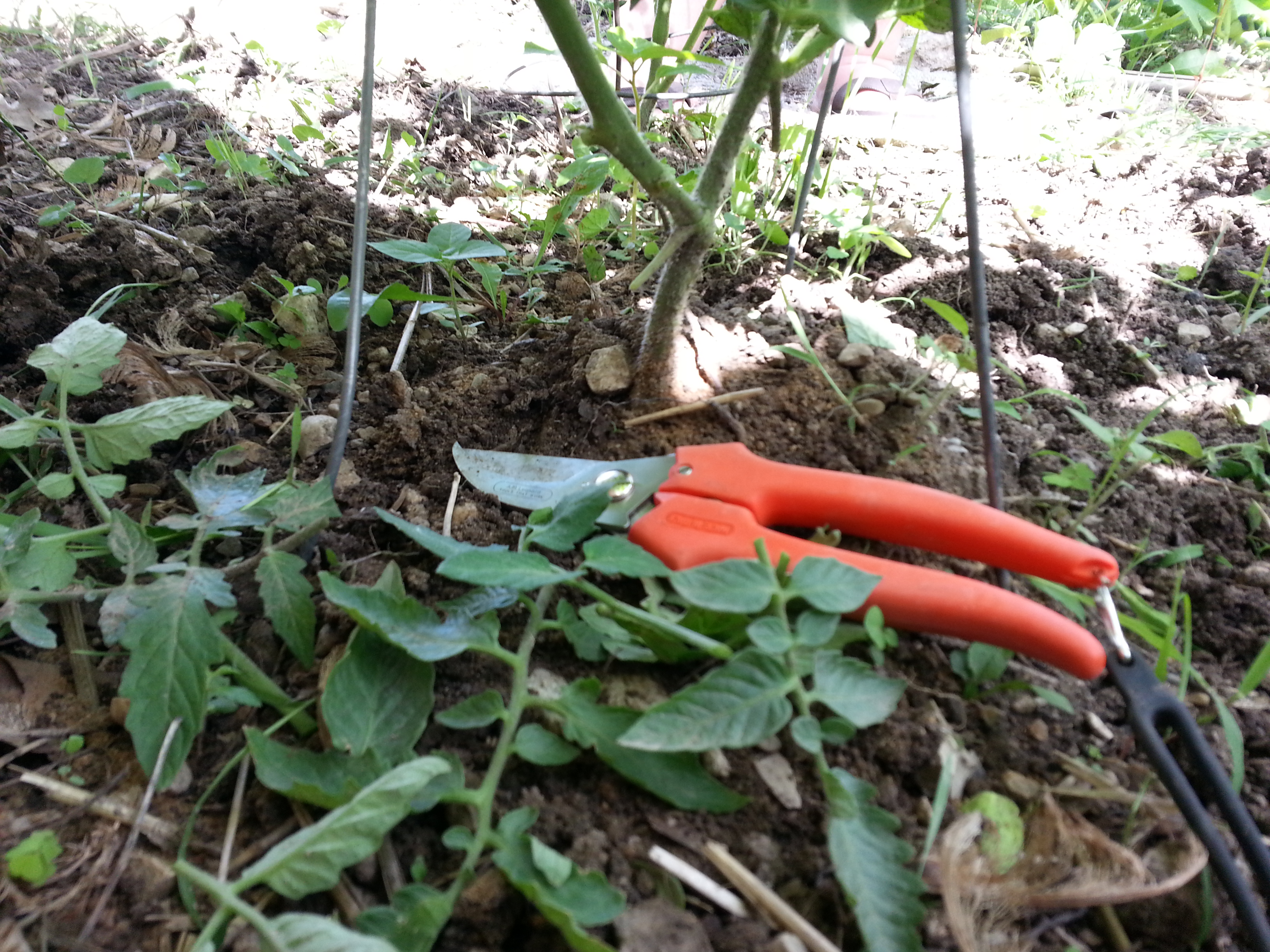 3. We don’t recommend cutting suckers from your plant. Many gardeners encourage the removing of suckers which is additional growth between the stem and the branch in its joint (pictured below). Removing these does decrease the yield , but in some cases could increase the health of the plant. Leaving them on, these suckers will create additional growth to the plant which will in turn create more opportunities for tomatoes. Ultimately it is at the discretion of the gardener whether or not to remove them, but we see no need to.