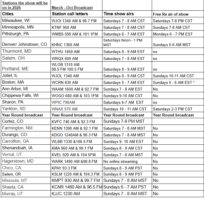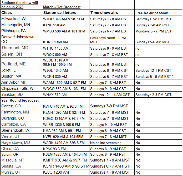 PODCAST OF PAST SHOWS IN 2026 ARE AT THE BOTTOM ON THIS PAGE