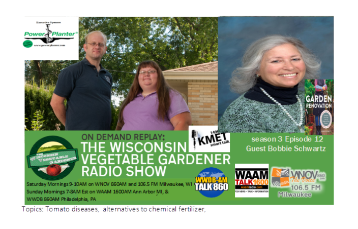 This entry was posted in Weekly Shows and tagged am talk radio, ann arbor, backyard gardening, Blossom end rot, California podcast, container gardening, containers, early blight, garden, garden talk radio, gardening, how-to, Inorganic fertilizers, kmet 1490 am, late blight, MI, Michigan, milwaukee, organic, Organic fertilizers, Perennials, Philadelphia, planting, podcast on vegetable gardening, raised bed gardening, row gardening, soil, spider mites, Tomato diseases, urban gardening, vegetable gardening, w293cx 106.5 fm. WAAM 1600AM, Wilt Bobbie Schwartz, Wisconsin, wnov 860am, WWBD 860am, zone 10, zone 5a, zone 9, zone6.