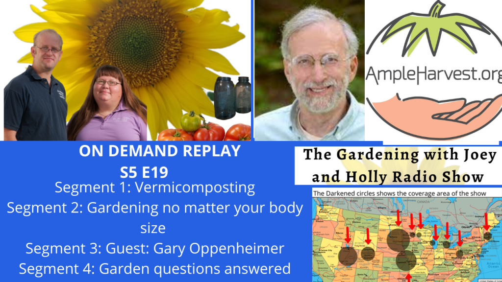 S5E19 Vermicomposting, Gardening no matter body size, Guest Gary Oppenheimer – The Gardening with Joey and Holly Radio Show