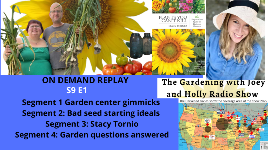 S9E1 Garden center gimmicks, Bad seed starting ideals, Guest Stacy Tornio Garden talk radio